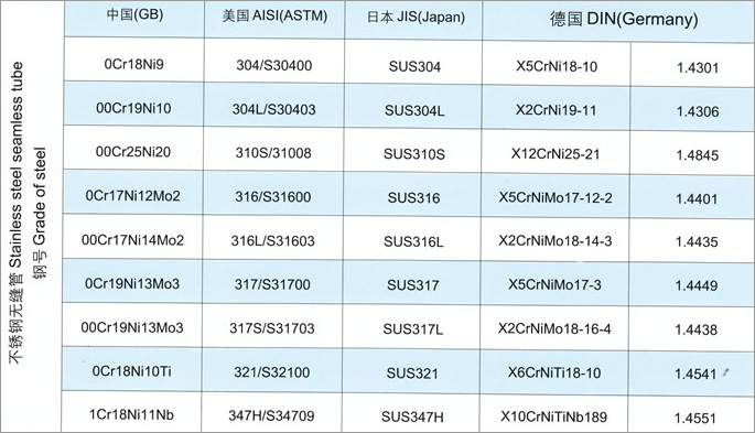 Approximate contrast form of stainless steel grade between china and some other countries