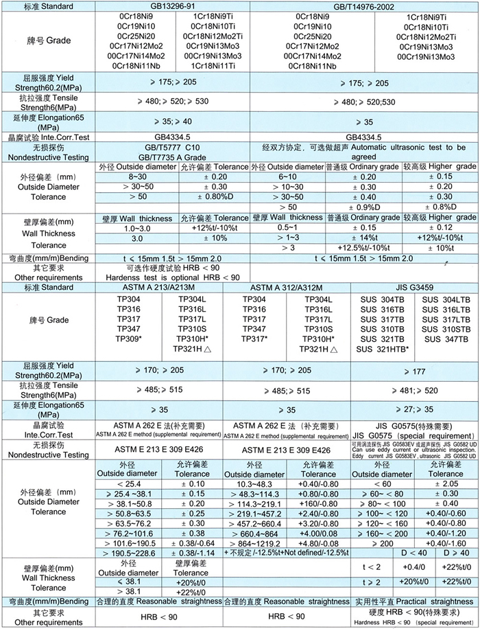 不锈钢无缝钢管国内外部分标准对照(参考)